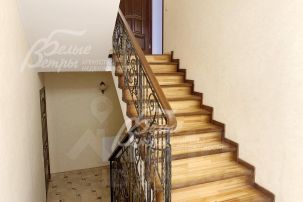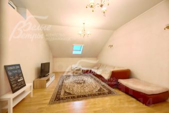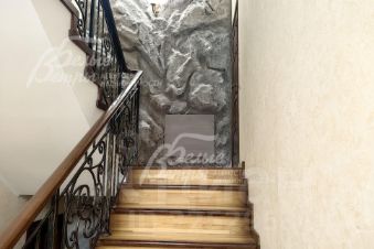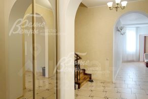 Описание внутренней отделки: стильная отделка в светлых спокойных тонах. Филенчатые двери со стеклом. На стенах - обои и декоративная штукатурка, в санузлах - плитка. На полу ламинат, в санузлах - теплые полы..