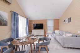 В доме предусмотрены две раздельные спальни и просторная кухня-гостиная. Спальные места рассчитаны на шесть человек, включая двуспальную кровать и две односпальные кровати с ортопедическими матрасами. В гостиной есть раскладной диван, смарт-телевизор и высокоскоростной интернет, а на кухне — вся необходимая техника: духовой шкаф, посудомоечная машина, капсульная кофемашина и посуда на шесть персон. В ванной комнате — полный набор принадлежностей, стиральная машина и теплые полы для комфортного проживания в любое время года.