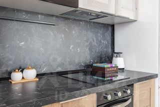 Кухня: Оснащена большим холодильником, посудомоечной машиной, плитой, духовкой, микроволновой печью, чайником, капсульной кофемашиной, а также всей необходимой столовой и кухонной посудой. Сахар, соль, специи, масло, чай и кофе предоставляются бесплатно.