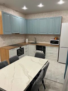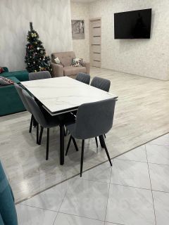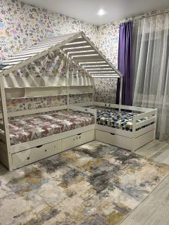 В доме установлено современное электрическое отопление, теплый пол во всех помещениях. Огромные окна в пол делают помещение гостиной светлым и просторным. При входе вас встречает прихожая со шкафом купе далее вы проходите в просторную гостиную, объединенную с кухней. В гостиной расположен обеденный стол и 6 стульев, рядом находится мягкий удобный диван, кресло кровать и телевизор 65 дюймов. Уютная кухня оснащенная бытовой техникой (холодильником, варочной панелью, духовкой, чайником, СВЧ, посудомойкой, системой очистки воды). В спальне расположена двух спальная кровать с ортопедическим матрасом 200х220, письменный стол, гардеробная, робот пылесос и телевизор 50 дюймов. Рядом расположена детская комната с домом кроватью для двух детей, двумя шкафами для одежды и книжный шкаф. Третья комната предназначена для гостей в которой находится диван, телевизор, комод.