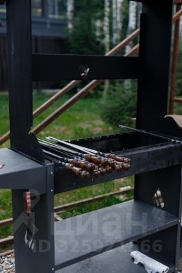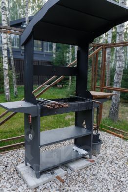 - зона барбекю на улице с мангалом и столом, уличные кресла, пледы.