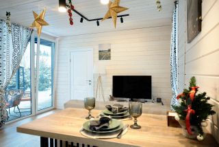 Для гостей предлагается 2 дома. В них есть все для комфортного проживания гостей: удобные спальные места с чистым постельным бельем, прекрасный вид на лес через панорамные окна, раскладной просторный диван, терраса с уютным уголком. В домах присутствует посуда для приготовления пищи, варочная панель, холодильник и микроволновая печь.