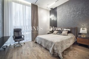 2 этаж: просторный холл со вторым светом в зоне лестницы, хозяйский блок 100 кв.м. с большой спальней с выходом на террасу, ванная комната с панорамным видом на участок, гардеробная на 14 шкафов и выходом на балкон, 2 детских спальных блока с выходом на террасу, гардеробными и санузел, гостевая спальня.