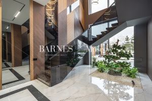 Основной дом построен по авторскому проекту в 2 этажа. Уникальное и очень продуманное планировочное решение и логистика дома. Высокие потолки и большое количество панорамного остекления от ведущего производителя SHUCO помогли создать очень просторное и наполненное светом пространство для жизни семьи. Современная инженерия и элементы системы умный дом с видеонаблюдением и автономными коммуникациями с удаленным управлением помогают создать неповторимый комфорт.