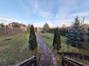 Участок огорожен, засеян газон, есть плодовые деревья, кедры, туи, кустарники.
