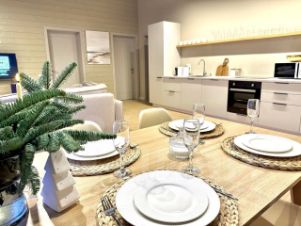 Идеально подходит для размещения 6 человек, но не с меньшим комфортом в нем сможет разместиться компания до 8 человек, включая детей. Дети до 3-х лет проживают бесплатно.