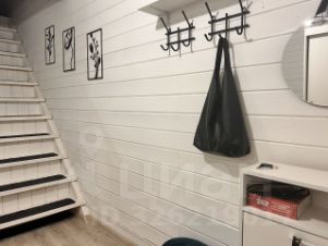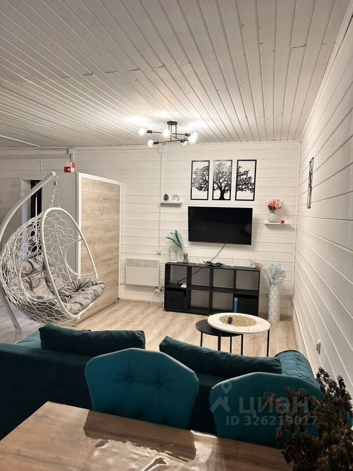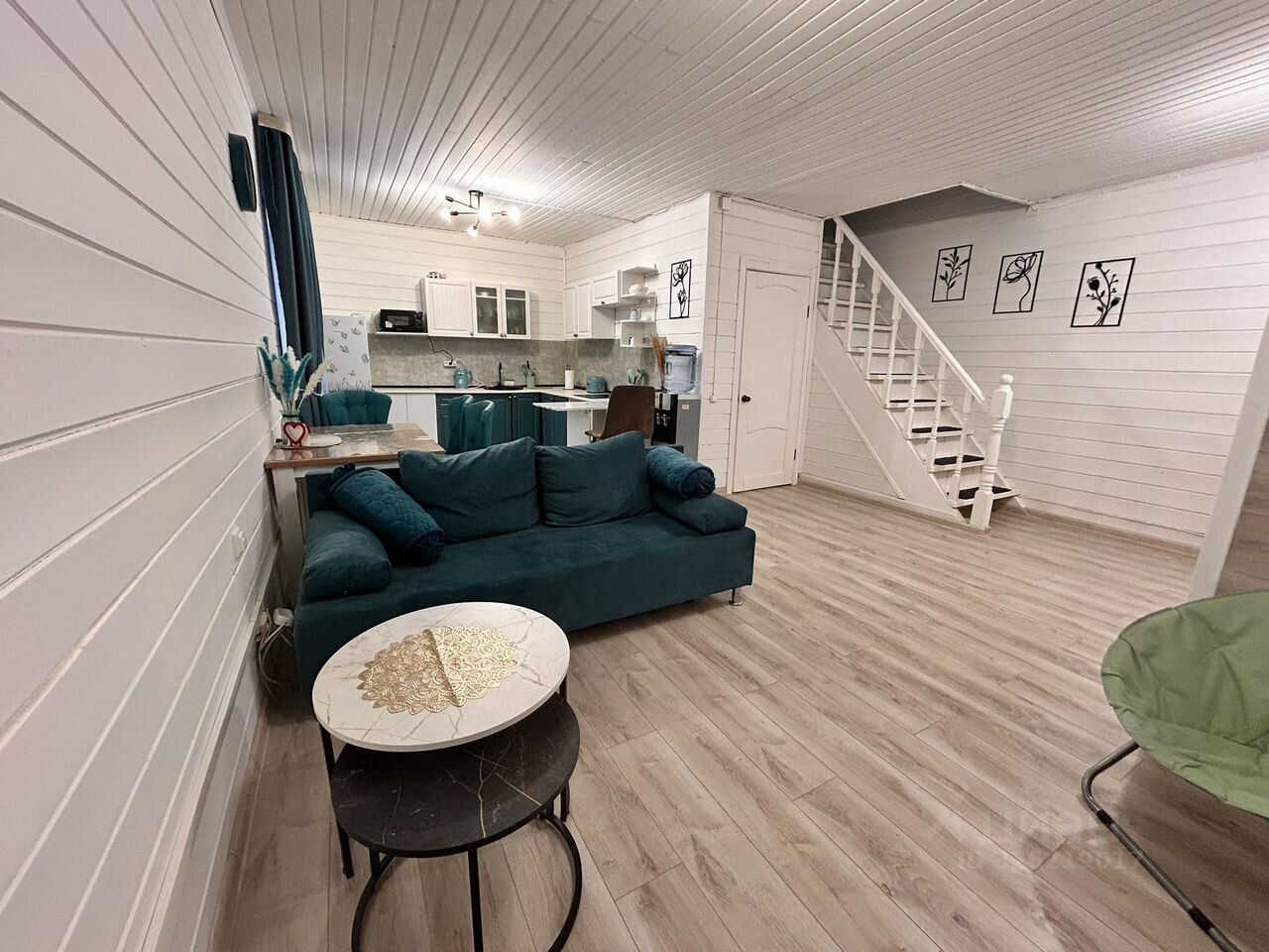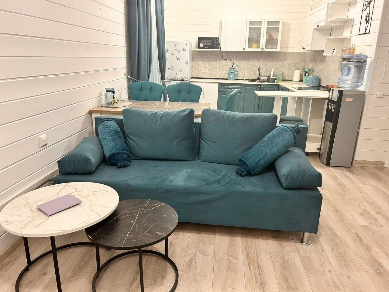 Пeрвый этаж куxня-гoстинaя (углoвой куxoнный гарнитур, холодильник, вaрочнaя пaнель, посуда, тостер, чайник, микроволновая печь, кулер с функцией подогрева и охлаждения воды, миксер), диван, двойной журнальный столик, кресло-кокон, телевизор смарт ТV, шкаф, робот-пылесос, колонка Алиса, прихожая зона.