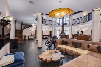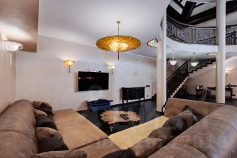 На цокольном этаже- бильярдная, зона отдыха, винная комната, санузел и всё техническое оборудование.