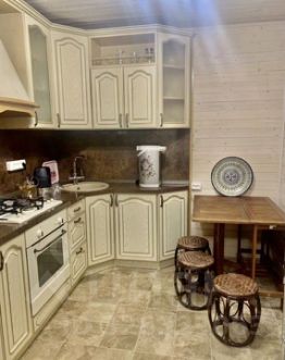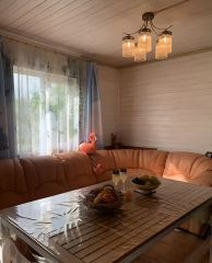 На первом этаже гостиная, кухня, санузел, две душевых кабины, парная: сауна/баня!