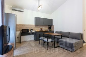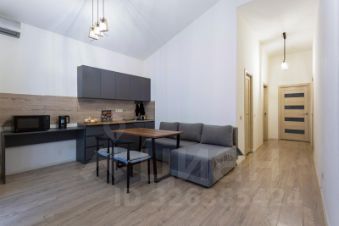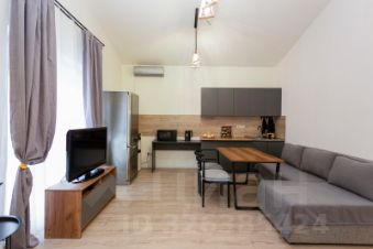 Уютная гостиная, совмещённая с кухней и обеденной зоной.