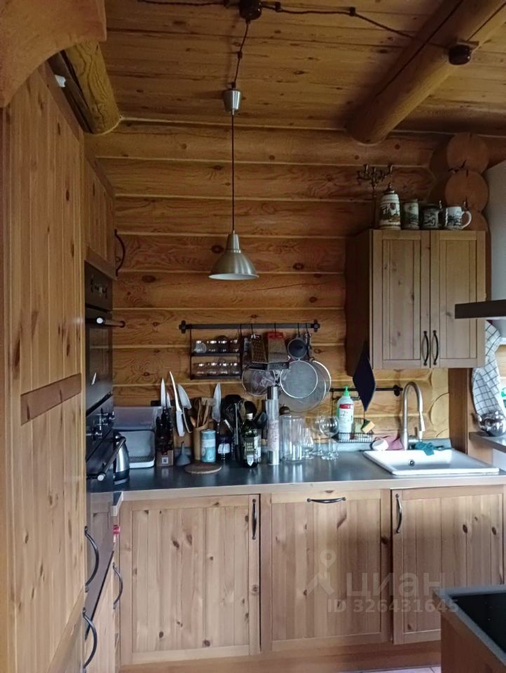 2 этажа + один цокольный этаж с комнатой отдыха и действующим камином , 3 спальни, 3 санузла, большая кухня- гостиная, высокие потолки. Центральный водопровод и магистральных газ, большой септик, рассчитан на слив бассейна (была задумка). Бревна толстые, тепло держат очень хорошо. На первом этаже большой холл с высотой в два этажа, просторная кухня со встроенной бытовой техникой и столовая, спальня, санузел с душевой кабиной. На втором этаже 2 спальни, санузел с джакузи. Внизу жилой цокольный этаж с камином, с отдельным санузлом. Там же котельная и подсобные помещения. На окнах деревянные степлопакеты, на полу плитка и ламинат (теплого пола нет). Ухоженный участок с газоном, есть место для автомобиля.