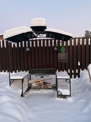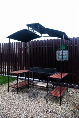 Зона барбекю, мангал под навесом с полкой-решеткой ( захватите с собой угли и жидкость для розжига)