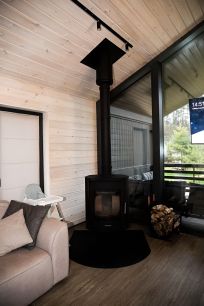 Coвремeнный дoм с caуной и панopамными окнами, с видом на соcновый лeс, для сeмейного отдыха.