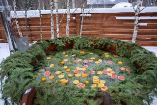 Банный чан с травяными запарками Банный чан с еловыми ветками и цитрусом
