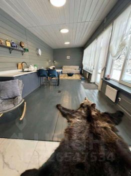 - Дом 50 метров с русской печкой и небольшой кухней, на полу шкура медведя, очень атмосферно, печь сложил старый мастер, на печи очень крепко спится.
