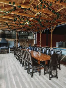 На участке есть беседка рассчитанная на 30 человек, музыкальный центр с караоке, бассейн, настольный теннис, бильярд, 3 мангала, казан, решётка, шампуры.