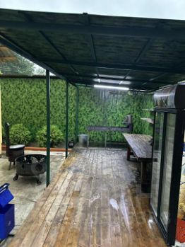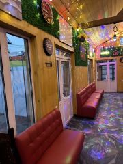 На участке большая беседка, зимняя и летняя, стол на 20 персон, зал с танцполом (диско шары и караоке), кальян, баня на дровах, мангальная зона, бирпонг, зона отдыха после бани.