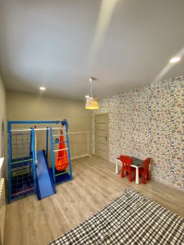 Хорошие матрасы. В одной детской спальне-безопасный спорткомплекс для маленьких детей с качелями, горкой и проч. Также в наличии раздвижная детская кровать от 2 до 7 лет.