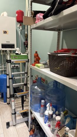 1-й этаж: кухня-гостиная с выходом на уличную террасу и приусадебный участок позади дома, туалет с душевой кабиной, хозяйственная комната с газовым оборудованием, лестница наверх. Кухня оборудована всей необходимой техникой: газовая плита с автоматическим электроподжигом, холодильник Side by Side, духовой шкаф, микроволновая печь, посудомоечная машина, кофемашина и проч.