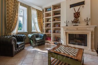 На первом этаже: большая кухня-столовая, библиотека с камином, гостиная, туалет.