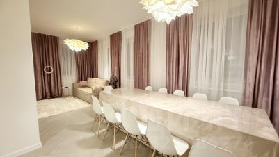• большой раскладной стол, 8 комфортных стульев
