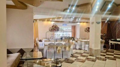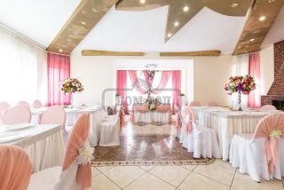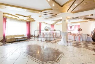 На 1-м этаже: торжественный банкетный зал 100 кв.м на 60 персон; каминный зал 40 кв.м ; кухня с необходимой посудой и техникой.