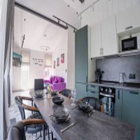 Вся необходимая техника: стиральная и посудомоечная машины, духовой шкаф, варочная панель, микроволновая печь.
