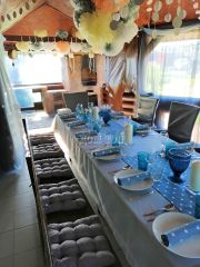 В коттедже: кухня-столовая с большим столом до 16 чел, все необходимое для готовки и сервировки стола, гостиная 50м.кв, большой камин, второй свет, музыка и TV, русский бильярд, 2 санузла с душевой кабиной и ванной, 6 спален, интернет.