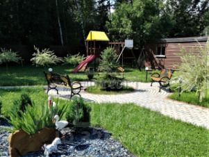 УЧАСТОК: 20 соток, есть выход в лес, в 60 м расположено красивое озеро. Для любителей, возможность половить рыбу и погулять, парковка на 5 машин находится под видеонаблюдением, возле дома стоянка на 4 автомобиля, на территории садовые дорожки из брусчатки. Фонари ночного освещения и удобные лавочки позволяют комфортно находиться на улице в любое время, площадка с газоном для игр с мячом, шатер с качелями, площадка с настольным теннисом под навесом, мангал, детская площадка с горкой и песочницей, беседка 35 м² с печкой, барбекю для жарки и печью под казан. В кухонной части беседки есть мойка и разделочный столы. Зона для костра.