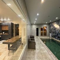 • Финская сауна на 6-7 человек с теплым бассейном (6*2.5 м, глубина 1.4 - 1.5 м) температура воды 27-32 градусов.