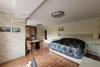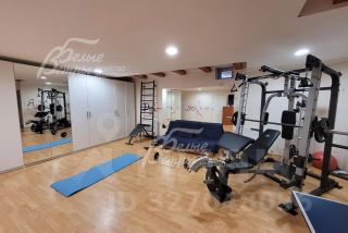 Мебель, оборудование: установлен современный кухонный гарнитур, фасады - лакированный МДФ сливочного цвета, с алюминиевыми молдингами и обрамлением концевых элементов, со всей необходимой техникой: электрический духовой шкаф Siemens, газовая варочная панель Bosch, вытяжка Siemens, посудомоечная машина Siemens, двухкамерный холодильник, а также двухкамерный холодильник LG, микроволновая печь Indesit, кухонный набор (тостер, чайник), система очистки воды BORK (с функцией нагрева и охлаждения воды). В гостиной и тренажерном зале - большой ТВ. В постирочной - стиральная машинка Bosch, утюг с парогенератором, пылесос. В зоне столовой - большой обеденный стол на 8 персон с кожаными креслами. В гостиной - модульный кожаный диван, журнальный столик. В Главной спальне - кровать King-Size c мягким изголовьем, тумбами, мягкий диван, шкаф-купе, рабочая зона. Гардеробная оборудована системой для хранения вещей. В других спальнях - минимализм, кровати с тумбами. На мансардном этаже организована рабочая зона: стол, кресло, стеллаж, диван. На цокольном этаже - шкафы для одежды, тренажеры, теннисный стол. Наличие карнизов и штор, а также занавески и римские шторы, потолочные дизайнерские люстры ( в том числе эффектная длинная люстра в гостиной), бра, светильники. Стены украшают картины. На подоконниках - живые цветы..
