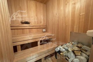 Описание внутренней отделки: стильный дизайнерский ремонт в светлых тонах. Стены в комнатах - известковая штукатурка, покраска, также обои, в санузлах - коллекционная плитка. Потолки: покраска, в гостиной - второй свет с дизайнерской люстрой. Полы: в комнатах - ламинат, в санузлах - плитка. Камин отделан под кирпич в стиле гостиной, где также присутствует элементы кирпичной стены. Дорогая сантехника и аксессуары..