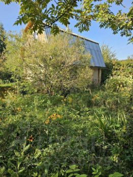 На участке 10 соток с большим количеством яблонь, слив и других садовых деревьев.