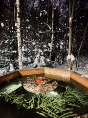 - Кocтpoвaя зонa, зона барбекю и сибирcкий банный чан у кaждoго дoмa
