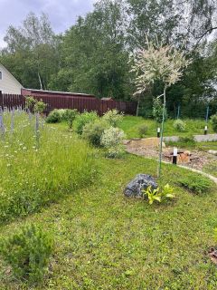 Есть молодой плодовый сад — яблони и ягоды уже плодоносят.