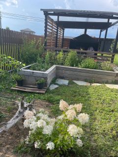 Рядом с летней кухней расположены две удобные грядки: