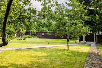 На участке выполнен ландшафтный дизайн, высажены хвойные и фруктовые деревья, цветы и газон для гольфа. В стоимость входит приходящий садовник, который выполняет все работы по благоустройству территории.