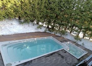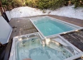 Баня - 44.4м, кв.м., санузел, сауна + душ, на улице в окружении туй подогреваемый круглогодично бассейн и джакузи, мини-кухня и раскладной диван.