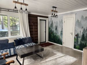 1 этаж: гостиная, кухня, с/у и душевая кабина. 2 этаж: две спальни, с/у, беде, умывальник. Большой балкон на 2 комнаты с видом на сосны. + сдается машиноместо в теплом, капитальном гараже.