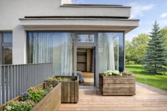 Невозможно не отметить потрясающие панорамные окна, сделанные на заказ и возможность выйти на летнюю Веранду прямо из гостиной.