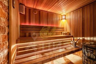 парная из канадского кедра и солевой стены,