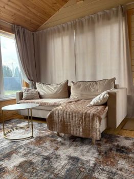 Дом отапливается электрическими батареями в каждом помещении, и в холодный сезон быстро нагревается печью-камином. Во всем доме работает Wi-Fi, в гостиной расположен большой телевизор со smart-tv.