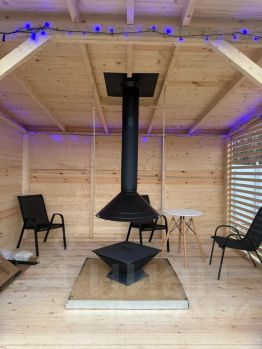 Просторная кухня-гостиная с красивым и Настоящим дровяным камином-печью.
