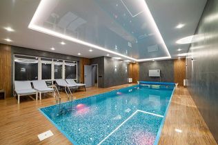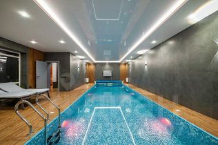 На территории вас ждет отдельный СПА-комплекс с настоящей баней на дровах, просторным теплым бассейном и освежающим обливным ведром. И, конечно же, парковка, рассчитанная на множество автомобилей.