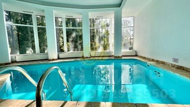 Для отдыха: Частный бассейн с подогревом и противотоком, электрическая сауна, купель, бильярд, камин.