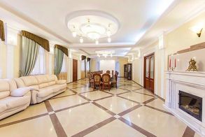 • банкетного зала до 30 персон в классическом стиле с роскошными люстрами из хрусталя, мраморным полом, камином, мягкой мебелью и TV.