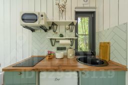 Коттедж "Ольха" Размещение: 2 гостя максимум, без дополнительного места; • Площадь 15 кв. м.; • Одна кухня-гостиная; • Двуспальная кровать 140 см; • Панорамные окна с роль шторами black night на всех окнах, включая входную дверь; • Бесплатная питьевая бутилированная вода; • Каменные электрические батареи (регулируемые) в комнате и санузле; • Теплый пол (регулируемый) по всей площади, включая санузел; • Полностью оснащенная кухня: плита, микроволновка, холодильник, чайник, наборы посуды, кастрюли, сковородки; • Комфортный отдельный санузел внутри дома \ раковина \ жидкое мыло \ фен; • Душевая кабина с тропическим душем \ гель для душа; • Обеденный стол, мягкие табуретки и прикроватная тумбочка; • Выдвижными мягкие ящики для белья; • Собственная зона мангала со столом и скамейками; • Уличная терраса наполовину крытая; • Уличные столик и кресла на террасе; • Роутер Wi-Fi; Размещение с животными (только собаки) возможно до 35 кг и не породы входящие в список бойцовских пород.