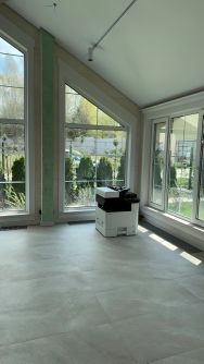 кухня- гостиная, с/у с джакузи и сауной, теплая видовая веранда (зимний сад) с панорамными окнами. Открытая терраса по всему периметру 1 го этажа.