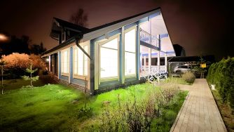 Дом из клееного бруса очень стильный и современный в стиле экологичного минимализма: