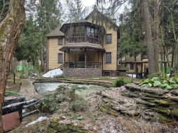 Сдаётся двухэтажный коттедж площадью 289,1 кв.м. на участке 21 сот, также на участке гостевой дом с баней на дровах, бассейн, детская площадка, пруд с рыбами, зона барбекю с печью, дом охраны и обслуживающего персонала.